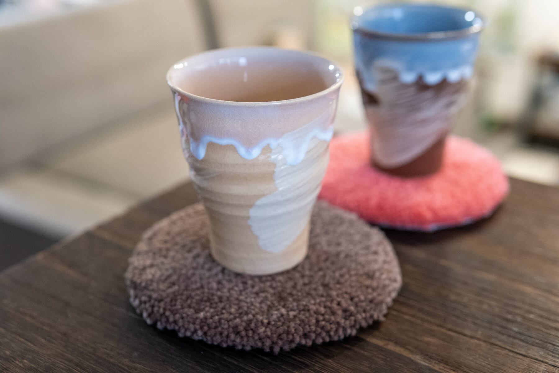 ただのまるだからこそフォルムにこだわって作りました。ずっしりとした毛糸の手触りと縁のカーブが効いた暖かみのあるラグです。